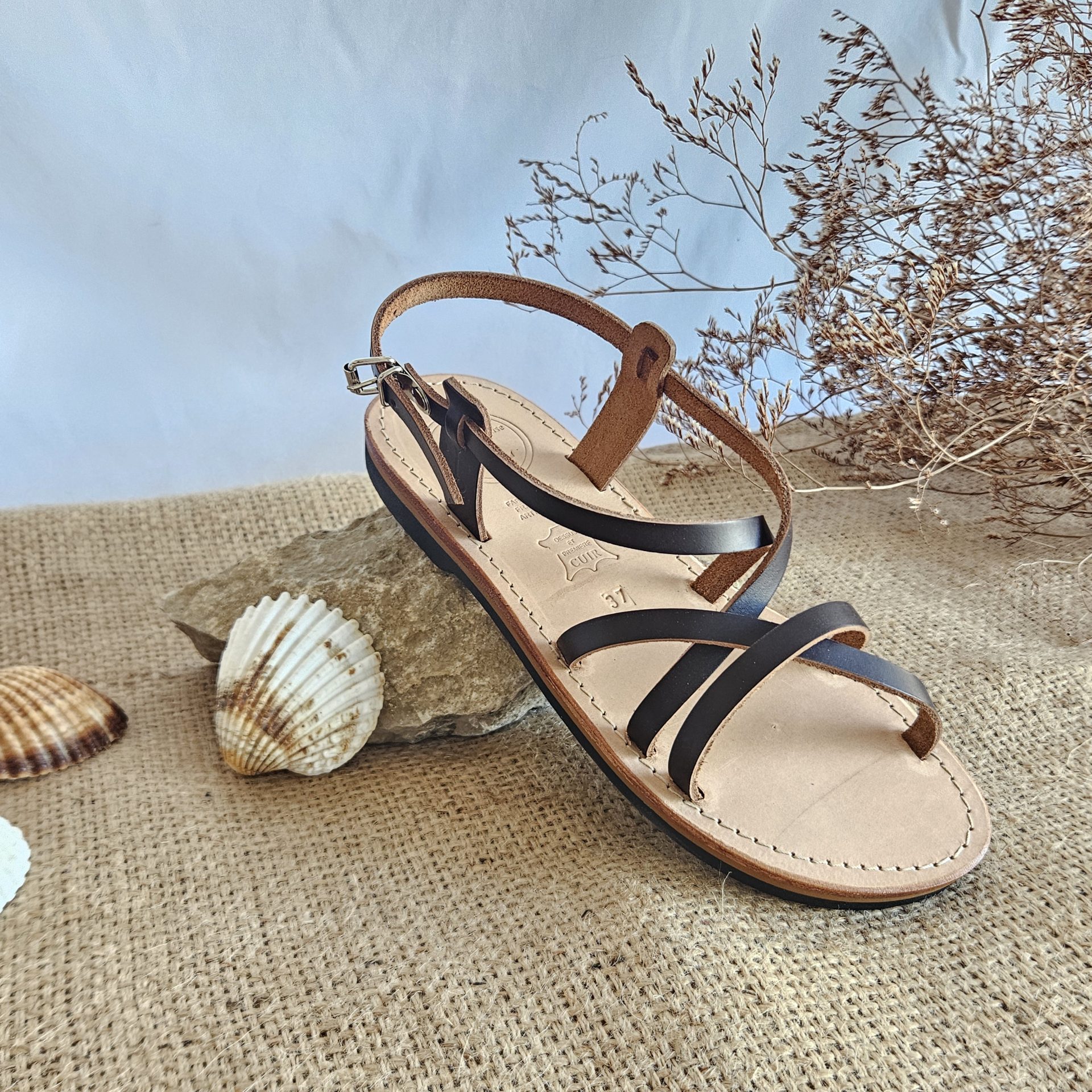 Les sandales en cuir femme Elie sont une fabrication artisanale.