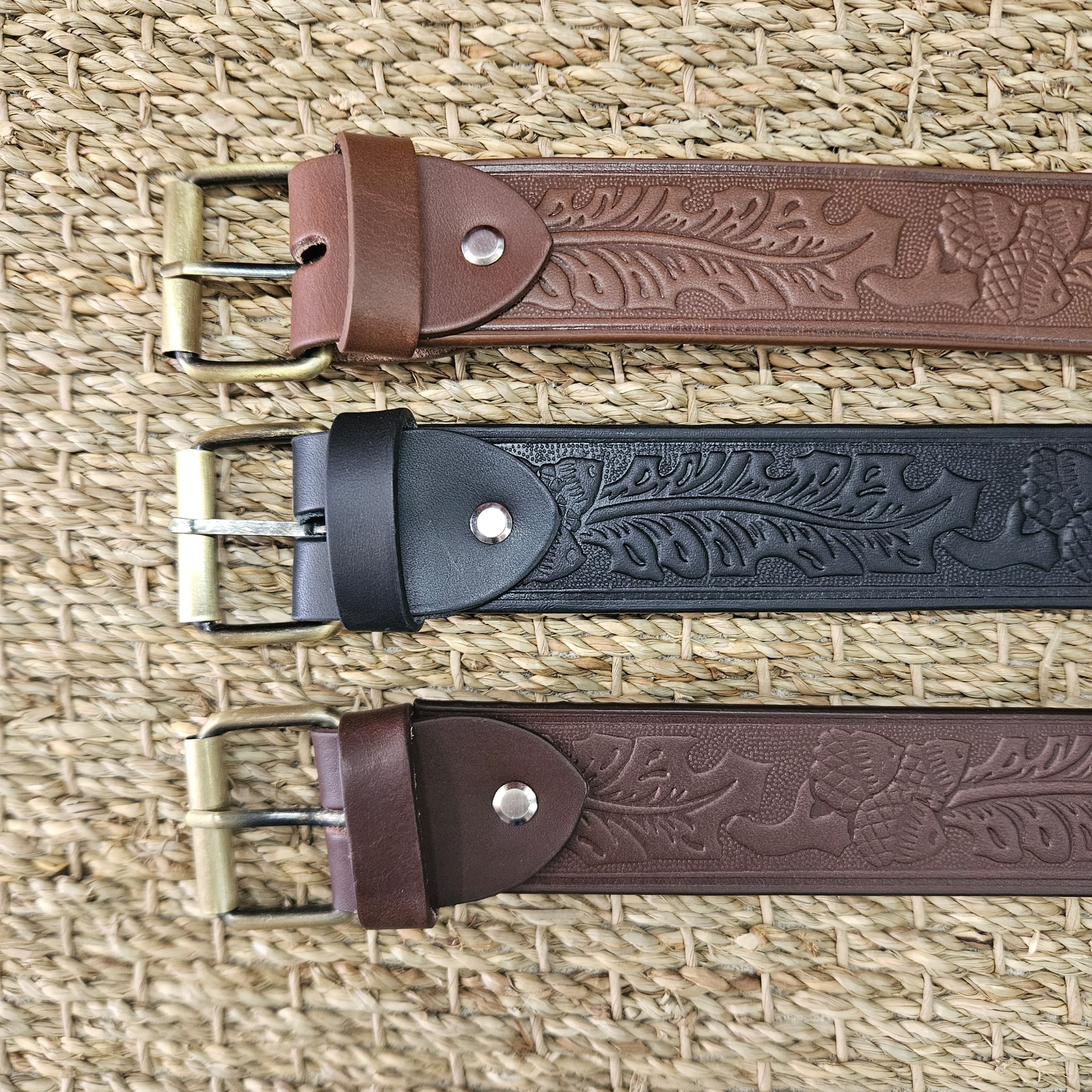 Le ceinturon de 3 mm d’épaisseur en croupon ( partie la plus noble de la peau ) cuir de taureau est de 4 cm de large , il convient à tous les passants de pantalon et mesure environ 120 cm. Vous l’adaptez à votre tour de taille, il vous suffit de vous munir d’un cutter et d’un appareil à faire les trous ( ou d’un clou et un marteau ).